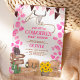 Rustic our little cowgirl first rodeo western cow 1st birthday party invitation featuring a rustic desert theme, with boho cow skull, cowboy lasso, brown and pink country bunter flags, cowboy hat, rustic wooden wheel, hay stack, sunflowers bouquet, green desert cactus, wooden sign with saloon and horses ( the text can be edited) and wild west pink cow pattern. Saddle up and join us for a first birthday!
