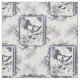 A country rooster print. Gorgeous for those country bumpkins who like a country feel. Rustic feel on a background of grey blue on a cotton fabric.