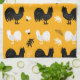 Rustic Roosters Farm Hand Drawn Pattern Kitchen Towel