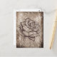Delicate rose drawn in black in on a rustic background on party products and favours.