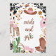 Rustic Pink First Rodeo Birthday Menu Sign Card Bold principalement rose et marron fille rodéo anniversaire menu de nourriture signe avec un casquette cowgirl brun et rose, crâne taureau, cactus, corde, gant cowgirl, bottes et plus.