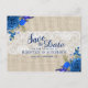 Rustic Royal Blue Floral Burlap Save the Date Wedding Announcement Postcard