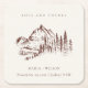 Rustic Rust Pine Woods Mountain Sketch Wedding Square Paper Coaster