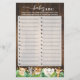 Rustic Safari Baby ABC Baby Shower Game Card