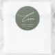 Rustic Sage Green Love Script with Name Wedding Classic Round Sticker