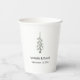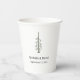 Casual wedding reception paper cups, with a sage green pine tree and customizable typography design. A rustic addition to your wedding reception refreshments.