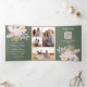 Rustic Sage Green Rose Pink Floral QR Code Wedding Tri-Fold Invitation