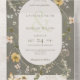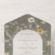 AVAILABLE WITH OR WITHOUT A QR CODE. This design features a soft wildflower frame around a cream oval on an emerald green background. Personalized All-In-One invitations are a unique combination of both a beautifully printed custom invitation with an easy to tear off perforated RSVP postcard. And they are so easy to use! You simply fold, then seal the back flap with the three included clear stickers, and mail. And when your guests receive your custom invite, they just tear the perforated RSVP Card off and drop it back in the mail to you!