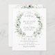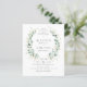 Rustic wedding invitation features sage watercolor eucalyptus botanical greenery wreath and modern chic script and font, elegant and romantic, great for modern rustic wedding, botanical garden wedding and boho country wedding.