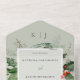 ALSO AVAILABLE IN STYLES WITHOUT DINNER OPTIONS OR WITH A QR CODE. Celebrate love in the enchanting embrace of winter with our exquisite wedding invitation. Embodying the serene beauty of the season, this invitation features a captivating soft sage green hue that exudes elegance and warmth. The centerpiece of this ethereal invitation is a transparent white text area, lovingly framed by intricately intertwined pine, holly, and red berries, reminiscent of a magical winter wonderland. Delicate winter greenery encircles the frame, accentuating the invitation's enchanting appeal. The couple's initials radiate the love that binds them together, symbolizing their union as they embark on a new chapter in life. Created by Simply Farmhouse Press.