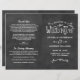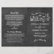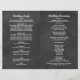 Wedding ceremony sheet programs feature "Welcome to the Wedding of" in white script and a background with a textured black chalkboard appearance. Personalize the custom text for your bridal party, ceremony information, and thank you message. Note: these text weight paper programs arrive flat and require folding to assemble.