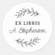 Rustic Script Botanical Leaves Ex Libris Bookplate Classic Round Sticker