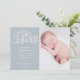 Decorative rustic script "hello" with flourishes and a butterfly stencil illustration coupled with name and date in elegant serif font. Very easy to customize with your information and photo for rustic elegant announcement, and you can change the colour of the background beyond the existing choices of dusty blush and baby blue.