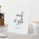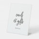 This rustic script cards and gifts pedestal sign is perfect for a country wedding or bridal shower. The simple and modern black and white design features unique whimsical handwritten calligraphy lettering with a contemporary minimalist boho style. Customizable in any colour. Keep the design minimal and simplistic, as is, or personalize it by adding your own graphics and artwork. The line of text at the bottom of the sign can be personalized with the date, the names of the bride and groom, or a short message like "Thank you". This sign can be used for a wedding or any event or party.
