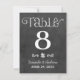 Charming chalkboard wedding table number cards for a casual chic occasion feature handwritten style fonts and scroll designs that have a white chalk appearance on a background that has a rustic black board textured appearance. Two-sided design. Customize and add each individual table number to your shopping cart.