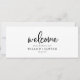 This rustic script hanging seating chart welcome header is perfect for a country wedding. The simple and modern black and white design features unique whimsical handwritten calligraphy lettering with a contemporary minimalist boho style. Customizable in any colour. Keep the design minimal and simplistic, as is, or personalize it by adding your own graphics and artwork. The card prints on the front and back (double-sided). Please check the collection for the coordinating table number seating chart cards.