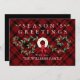 Rustic Season's Greetings Wreath Red Plaid Family Holiday Card