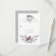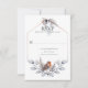A rustic rsvp featuring a trendy geometric frame with silver, grey, and rust winter botanicals with a colourful bird in the same colours at the bottom. The back of the card is pale grey. Easily personalize with your own information.