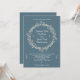 Rustic Slate Blue Outlined Floral Wreath Wedding Invitation