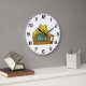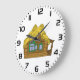 Keep time with a touch of rustic elegance using this unique wall clock. It features the adorable and traditional graphic of a wooden log house, complete with a distinctive thatched straw roof and colorful window details. This folk art inspired design brings the cozy charm of a woodland cottage or Russian Izba into your kitchen, office, or living room. More than just a timepiece, this clock is a decorative piece that appeals to lovers of country style, fairy tales, and unique cultural architecture, making it a conversation starter in any space.