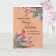 Merry Christmas for son and his family card with rustic watercolor greenery and cardinal and vintage paper pattern.