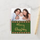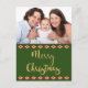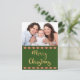 The festive holiday design on the front of this postcard features a photo in the top half, which you can replace with your own photo. On the bottom half are the words "Merry Christmas" in popular gold script typography on a forest green background framed by a southwestern diamonds above and below. The back of the card has the words, "And a Happy New Year" in matching gold script typography on a white background, followed by two green "from" lines that you can personalize, framed by southwestern diamonds above and below. A customizable return address also appears in the upper left on the back of the postcard, to save you time when writing out your holiday postcards.
