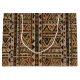 Warm geometric stripe pattern gift bag featuring tribal-inspired diamonds, zigzags, and textured vertical bands in earthy brown, terracotta, tan, beige, and charcoal tones. A cozy boho design ideal for southwestern décor lovers, rustic style fans, and anyone drawn to earthy, handcrafted aesthetics.