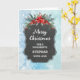 Merry Christmas for stepdad card with rustic country chalkboard pattern and winter foliage with poinsettias.