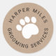 Rustic sticker with a dog paw print and with your personalized text surrounding. Please note, change in text might affect the radius, go to customize further and make the necessary changes. Suitable for small business, dog groomer, veterinarian, dog walker, doggie daycare.