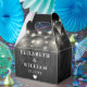 These string lights rustic black wood boho barn wedding favour boxes can be personalized with your information in chic typography. Designed by Thisisnotme©