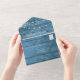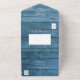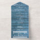 Rustic String lights blue wood Wedding all in one Invitation