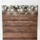All in one tri-fold wedding invitation featuring sage and lilac greenery and pretty string lights on a rustic wood panels background. Personalize with your wedding details and special photo. The invitation includes your celebration guest information details and a detachable RSVP card. Designed by Thisisnotme©