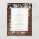 Featuring pretty string lights and delicate watercolor greenery leaves on a rustic wood panels background and an elegant gold crucifix, this baptism or christening invitation can be personalized with your special information. Designed by Thisisnotme©