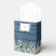 Elegant bridal shower favour box featuring pretty string lights and delicate watercolor leaves framing the brides to be's name and special date set in modern typography on a rustic blue wood background. You can personalize it with your own thank you message under the lid. A perfect way to say thank you to your guests! Designed by Thisisnotme©