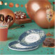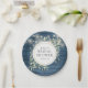 Featuring pretty string lights and delicate watercolor greenery leaves on a rustic blue wood background, these chic botanical bridal shower paper plates can be personalized with your special bridal shower information. Designed by Thisisnotme©