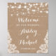 Rustic String Lights Lace Burlap Wedding Sign Poster.