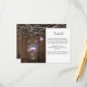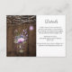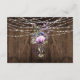 Rustic wedding enclosure cards featuring a mason jar filled with violet, purple, and lavender wildflowers with baby's breath and greenery and a purple ribbon. The top of the card features white string lights with a pale violet mason jar over a weathered barn wood background. The text boxes are easy to personalize with your own information.