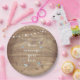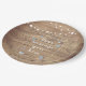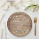 A rustic country paper plates featuring string lights above a vintage mason jar filled with your personalised message and scattered delicate wildflowers on a natural weathered wood panel background. Perfect for weddings, bridal showers, baby showers, baptisms, engagement parties, anniversary celebrations, graduations, birthday get-togethers and other special events throughout the year! Designed by Thisisnotme©