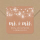 Custom printed stickers personalized with your Mr. and Mrs. monogram and wedding date, perfect for wedding favour labels, welcome bags or envelope seals with your invitations. The design features glowing string lights and mason jars on a terra cotta rust background. Use the design tools to choose any background colour, change the text fonts and colours or upload your own photos to create a unique one of a kind design.