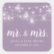 Custom printed stickers personalized with your Mr. and Mrs. monogram and wedding date, perfect for wedding favour labels, welcome bags or envelope seals with your invitations. The design features glowing string lights and mason jars on a dusty purple background. Use the design tools to choose any background colour, change the text fonts and colours or upload your own photos to create a unique one of a kind design.