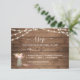 Rustic String Lights Peony Wedding RSVP card featuring a warm wood plank background with glowing string lights and a pink peony bouquet arranged in a mason jar. The soft script heading paired with clean serif text creates a balanced layout that feels inviting and easy to complete. Ideal for barn weddings, outdoor celebrations, country venues, and romantic rustic themes, this design includes space for guest names, attendance confirmation, and meal selections. Easily personalize with your details.