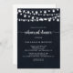 This rustic string lights rehearsal dinner invitation is perfect for a simple event. The design features beautiful hand-painted string lights in a dark blue background.