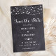 Save The Date! Announce your wedding to friends and family with these rustic chalkboard and string lights save the date cards. Personalize with names, wedding date, location. These unique slate wedding save the cards will make a lasting impression, your guests will make sure to save the date! COPYRIGHT © 2020 Judy Burrows, Black Dog Art - All Rights Reserved. Rustic String Lights Slate Wedding Save The Date Note Card