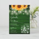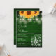 A stylish rustic wedding invitation featuring pretty sunflowers, string lights and mason jars. The happy couple's names are set in an elegant script above the special wedding details on a rustic emerald green wood background. The reverse features your monogram initials set within a matching sunflower. Designed by Thisisnotme©