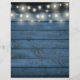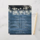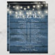 This rustic string lights wedding schedule-timeline can be personalized with your wedding details set chic white lettering on a blue wood panels background. Designed by Thisisnotme©