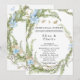 Design features a printed coloured floral element in shades of green and dusty blue watercolor florals wreath with baby blue butterflies on a canvas background. Calligraphy or type writing with the design artwork. Mix and match collection piece. Great for your wedding celebrations!