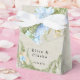 Design features a printed coloured floral element in shades of green and dusty blue watercolor florals wreath with baby blue butterflies on a canvas background. Calligraphy or type writing with the design artwork. Mix and match collection piece. Great for your wedding celebrations!