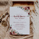 This rustic summer floral bridal shower tea party invitation is perfect for a simple wedding shower. The design features burgundy, pink and blush watercolor flowers with green leaves in a brownish stained background.