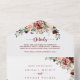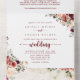 This rustic summer floral calligraphy wedding all in one invitation is perfect for a simple wedding. The design features burgundy, pink and blush watercolor flowers with green leaves in a brownish stained background.