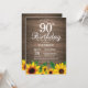 Rustic Sunflower 90th Birthday Invitation